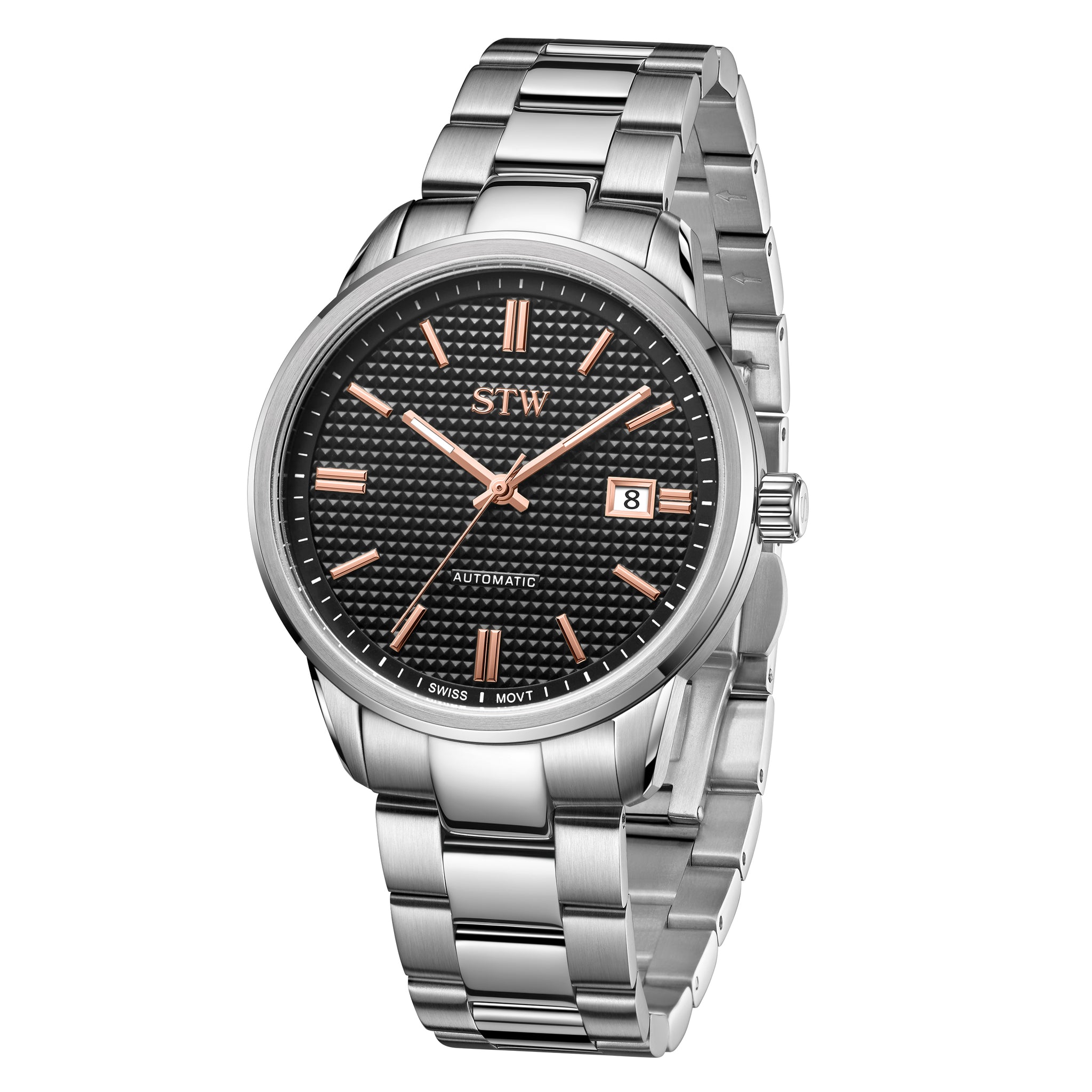 Stainless steel and sleek minimalism are at the core of our The Auto collection. This collection contains of classic silver metal band and the Swiss made automatic movement, which brings out the perfect match of functional and fashion.